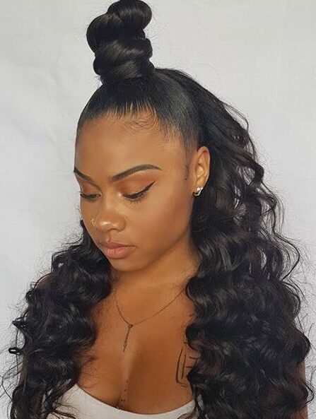Un style mi- attaché, mi- liberté. Le haut est stylisé en ponytail tandis que le bas est sublimé par un tissage lisse ou bouclé, pour un look sophistiqué et féminin.